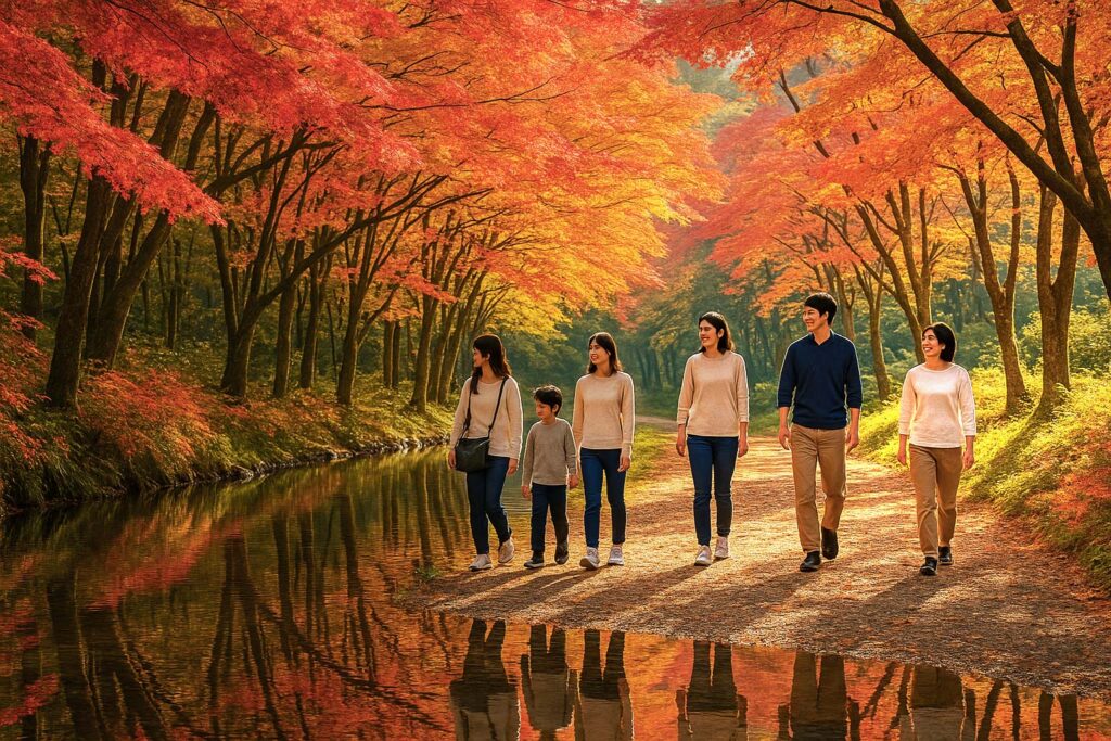 朝の光を受けた水面に映る紅葉は、まさに「水鏡」のよう。夕暮れ時には一層深い色彩に包まれ、静寂の中で息を呑む美しさを体感できます。